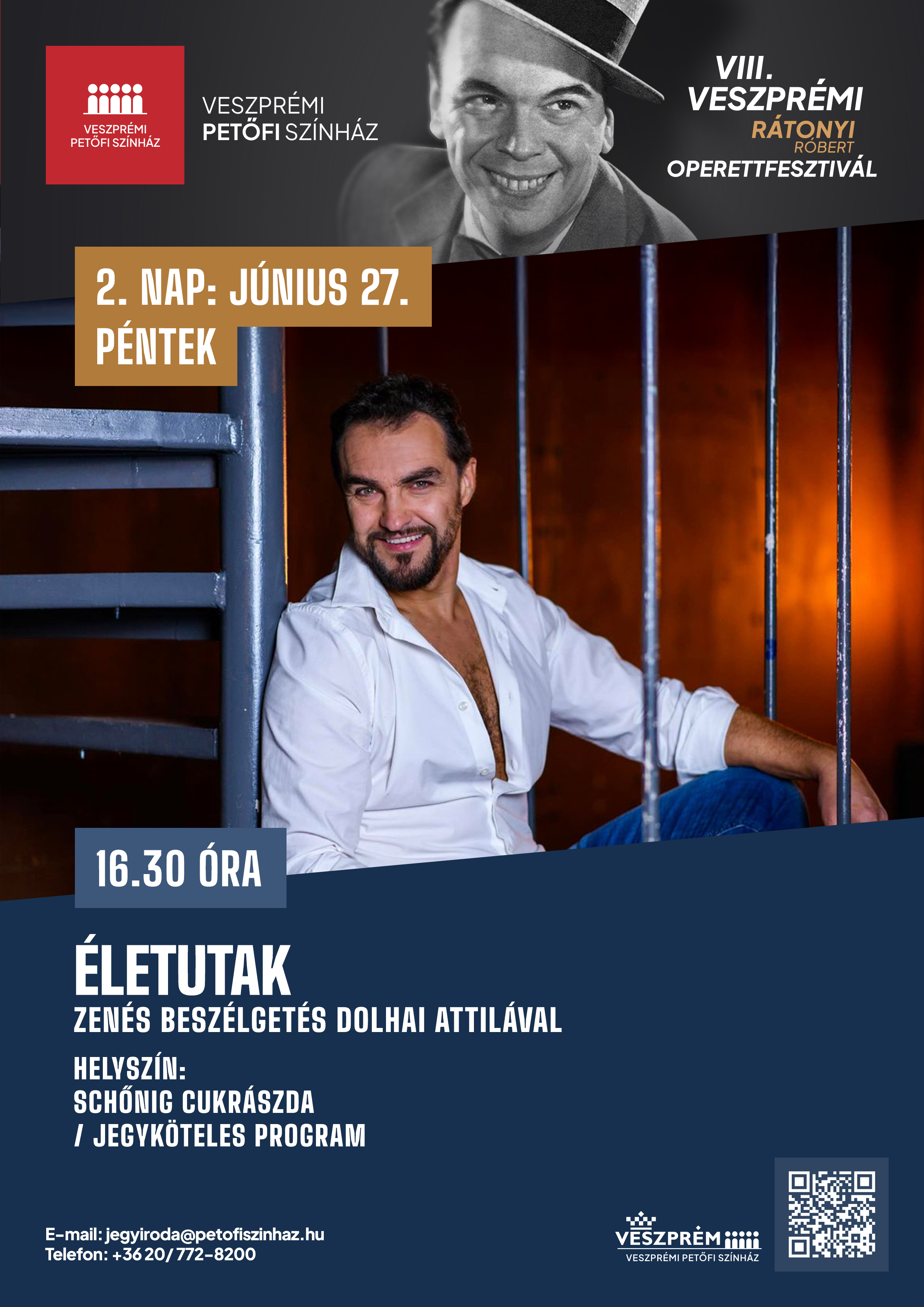 Az innen pár perces sétára lévő Schőnig Cukrászdában 16 óra 30 perckor kezdődik az Életutak következő epizódja, amelyen ezúttal Dolhai Attila lesz Kellerné Egresi Zsuzsanna vendége. Téma lesz bőven, hiszen a Jászai Mari-díjas, érdemes művész színész, musical- és operetténekes már most igen gazdag pályát tudhat maga mögött, nem is szólva arról, hogy a beszélgetésre első színházi rendezése bemutatójának másnapján kerül sor. (Jegyköteles program.)