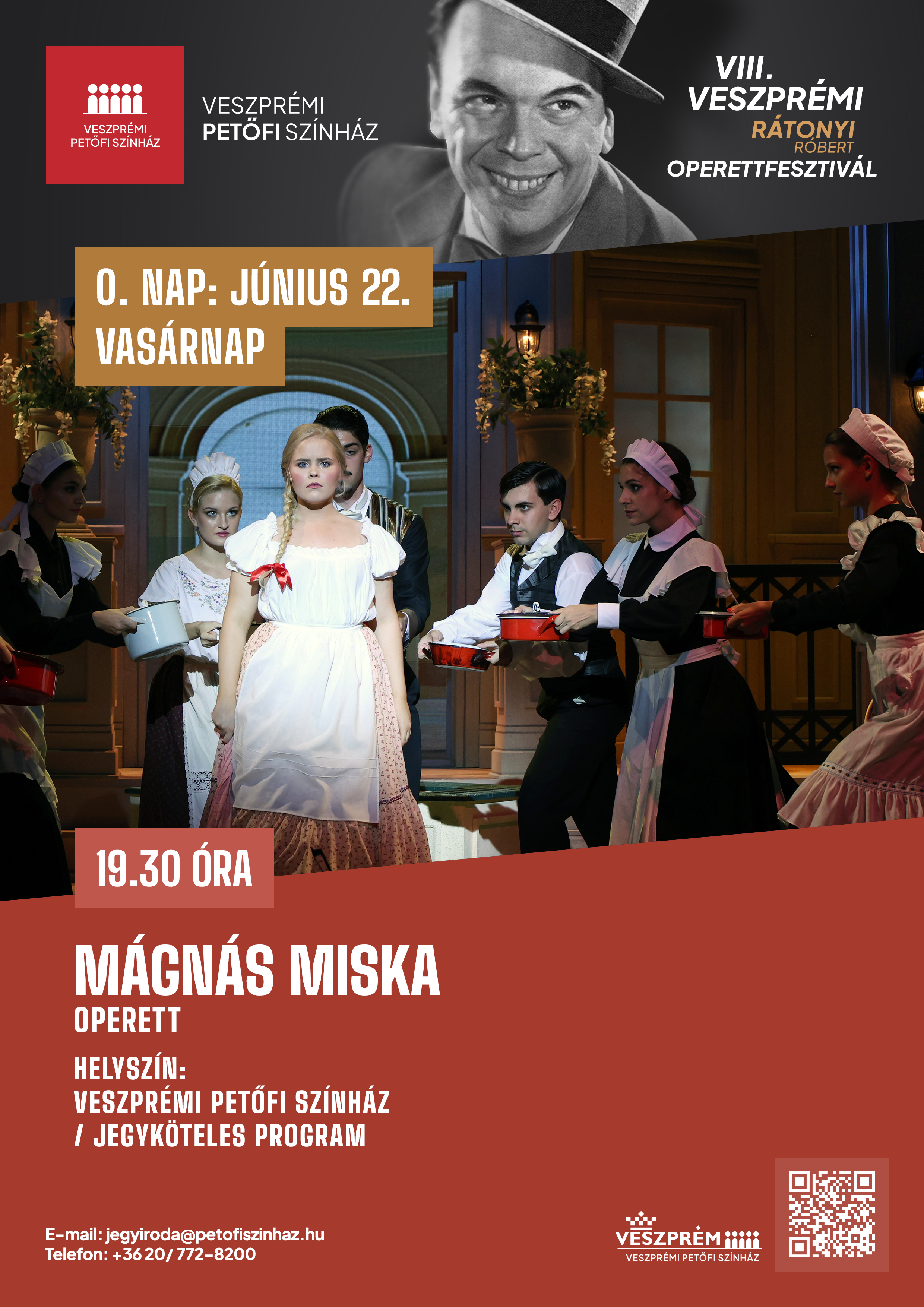 Este 19 óra 30 perckor kezdődik a Nagyszínházban a tavalyi fesztiválon nagy sikerrel bemutatott, az évadban szinte mindig állótapssal jutalmazott Mágnás Miska című operett. (Jegyköteles program.)