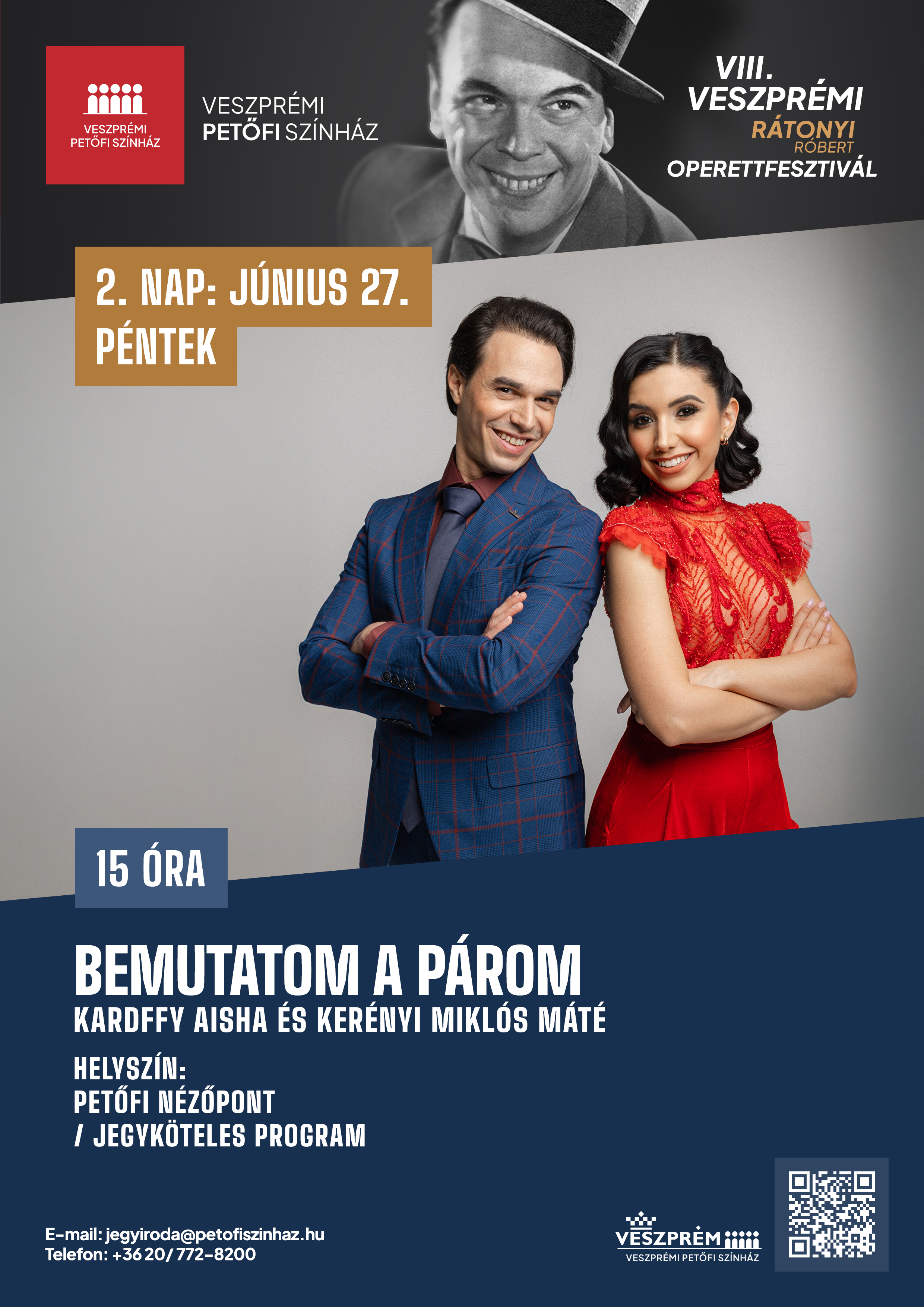 A fesztivál második napja különleges programmal indul: a 15 órakor kezdődő, Bemutatom a párom című, a Petőfi NézőPontban látható műsor keretében Kardffy Aisha színésznőt – akit a mostani évadban a Csoportterápia című musicalkomédiában láthattak a nézők, de ezúttal szubretti minőségében lesz jelen – mutatja be a közönségnek a Budapesti Operettszínház társulatának tagja, Kerényi Miklós Máté. Nem annyira szavakkal, mint inkább zenével mesélnek kapcsolatuk – és úgy általában minden férfi-női kapcsolat – humoros, olykor keserédes mozzanatairól. (Jegyköteles program.)